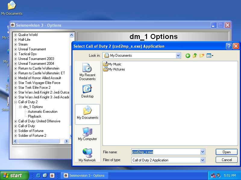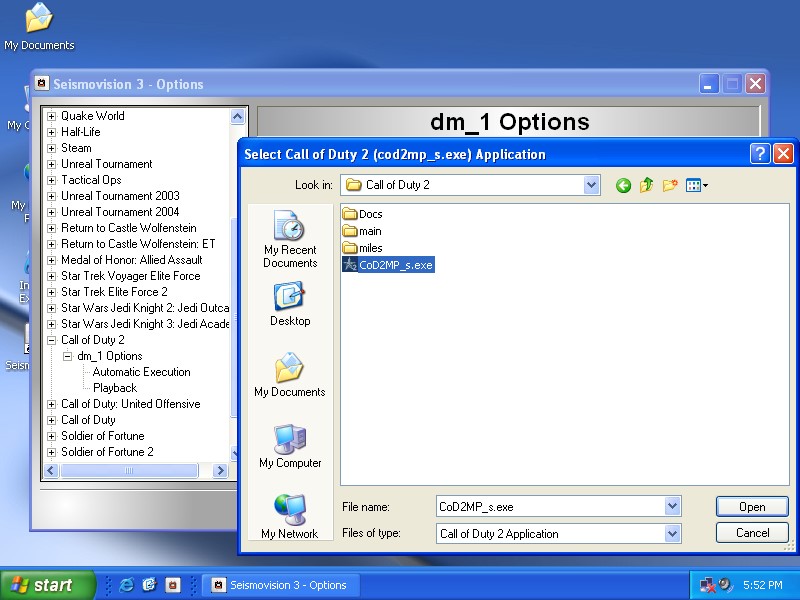 This guide will step you through the process of playing your first demo. Before we can play our demo, we have to configure Seismovision and tell it where to find the game. We are going to use a Call of Duty 2 demo in this guide. The process for other demos is similar in steps.