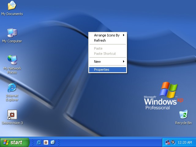 Right-click on an empty space on the Desktop and select 'Properties'.